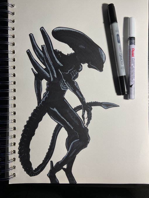 #inktober 31 days of horror inspired art. . Day 15: #xenomorph from #alien . . #copicciaomarkers #pentelpaintmarker