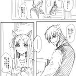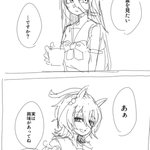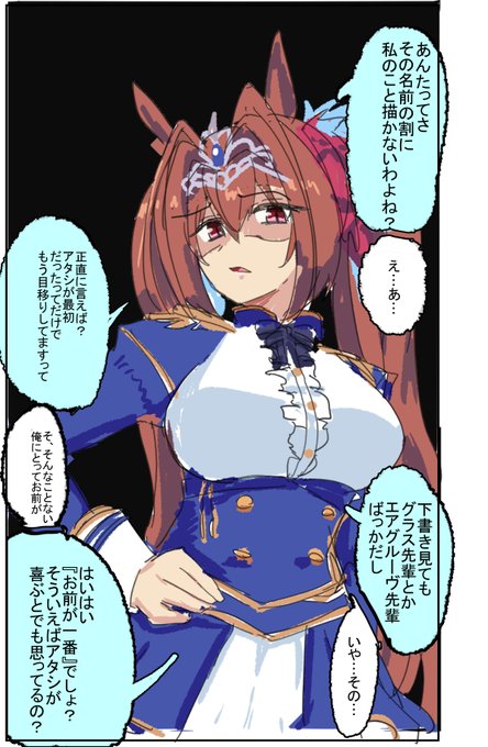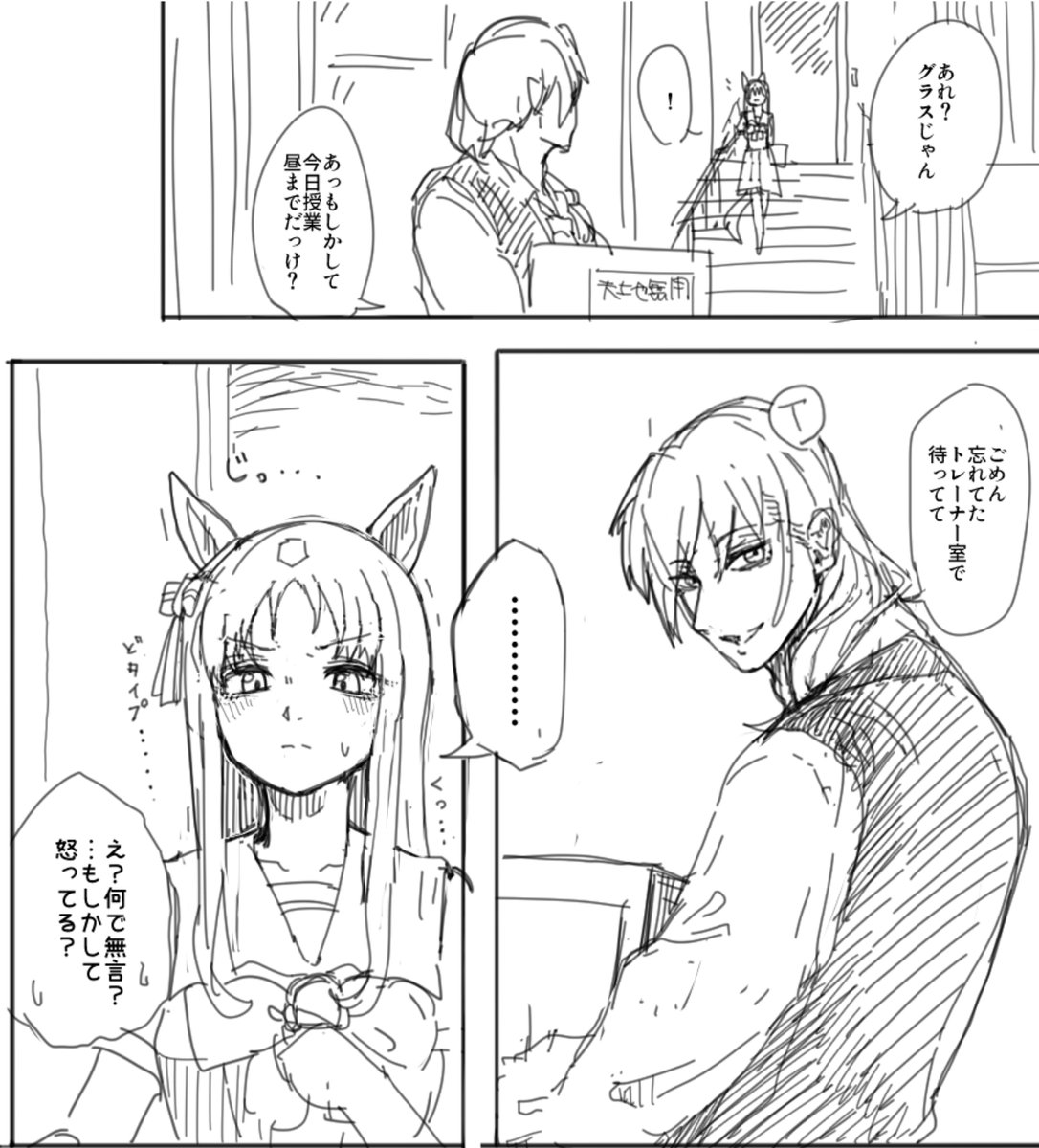 いただいたリプにエルにトレーナーの顔がどタイプだと言うことをからかわれて欲しいというものがあり、良いなと思って描かせていただきました。 結果、からかわれているというより、言及されてるという感じになりましたが、良かったら見てください。