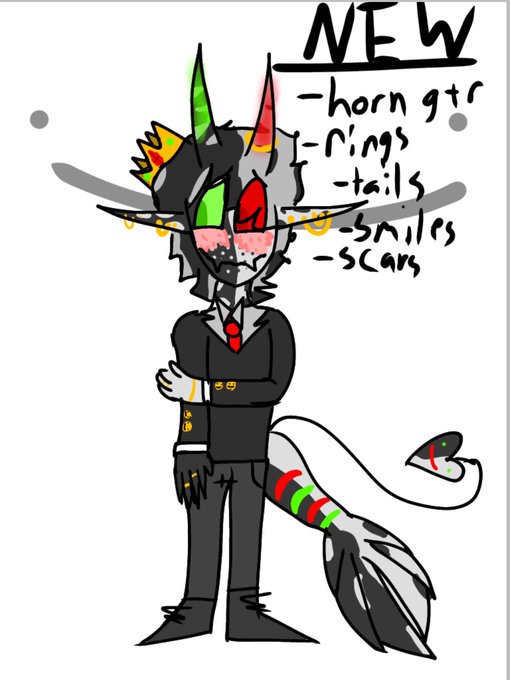 NEW RANBOO DESIGN! (If you cant read my hand writing) His horns have red and green on him now! Scars on his eyes! Two amazing tails! Rings! (Tubbo’s wedding ring on his horn) Smiles! SOON TOMMY 10MIL! #ranboo #ranboofanart #art #fanart #mcyt #mcytfanart #ArtistoftheSummer