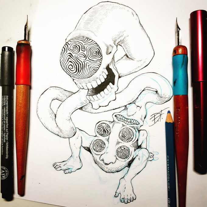 Hypno-Dämon. Darf auf keiner Familienfeier fehlen. #inktober #gpen #inkdrawing #lineart #inktober2020