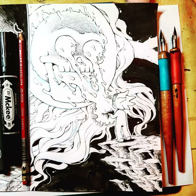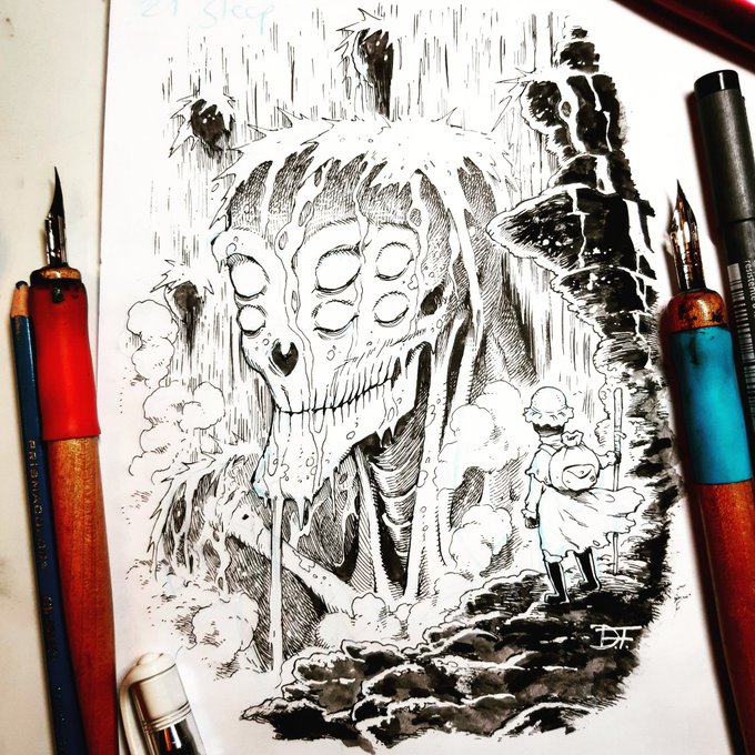 Gute Aussicht bei diesem #Inktober-Bild. Und das Seelenfresser-Schwert ist zurück! #inktober2020 #gpen #mangastyle #inking #demonmindgame #outpost