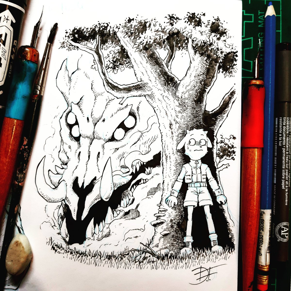 Versteck dich, kleiner Ziegenjunge! Grad kurz vor Weihnachten braucht man echt nicht so 'nen Stress mit Geister-Keilern. #inktober2020 #gpen #mangastyle #inking #mangadrawing #mangaartwork #mangaartwork