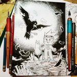 Teil 5 meiner #inktober2021 Kurzgeschichte. Der tote Rabe und das Energiewesen vereinigen sich.