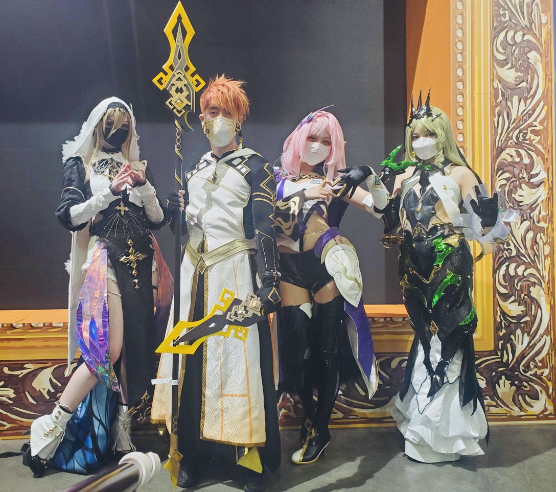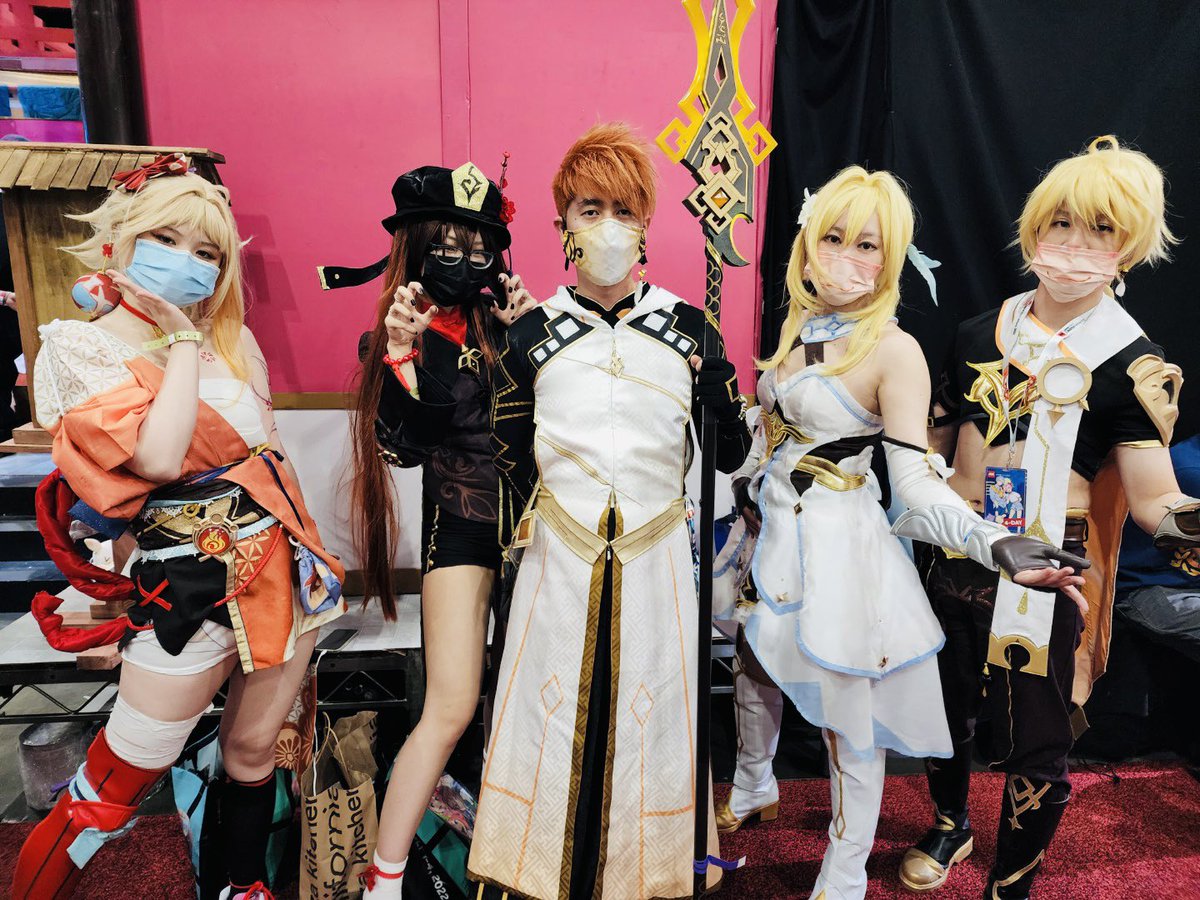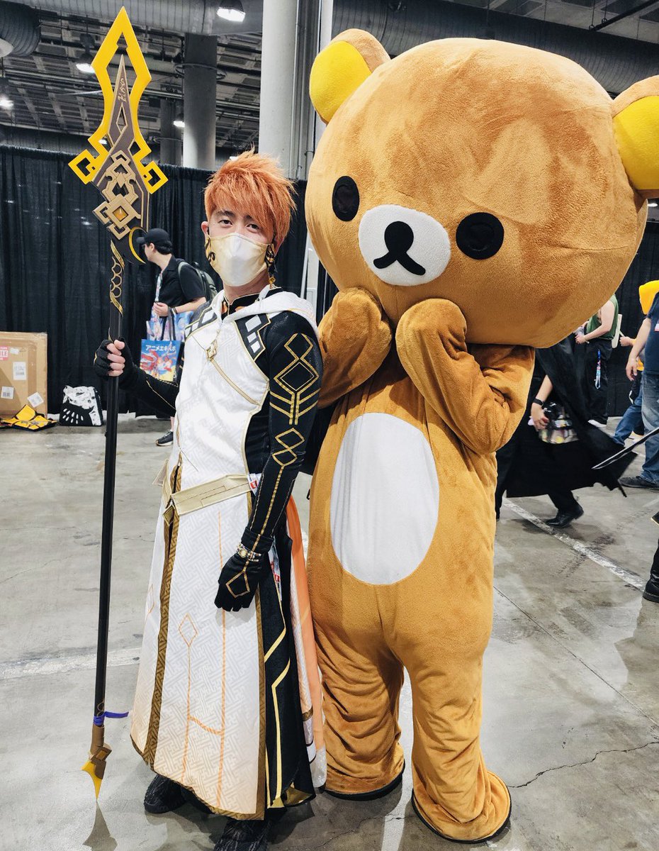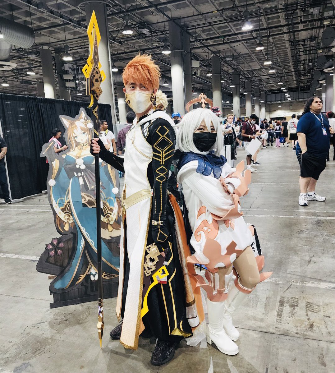 Cosplay with these amazing friends! Josh and Annie! Character: Tengen Uzui, Belle, and Zhongli. #GenshinImpact #demonslayer #zhongli #belle #tengenuzui #uzui #cosplay #AnimeExpo #AnimeExpo2022