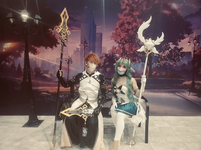 AX Day1! My other spear broke but it’s okay… #zhongli #AnimeExpo #cosplay #GenshinImpact #LeagueOfLegends #StarGuardians