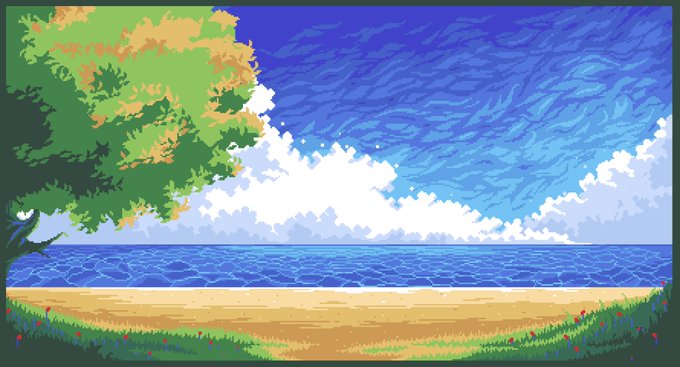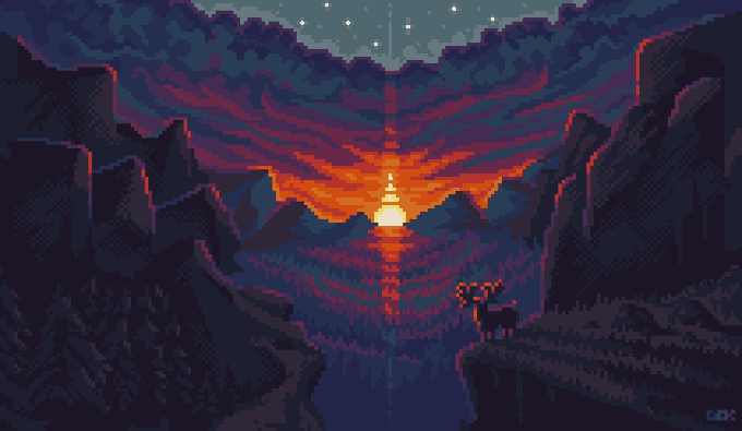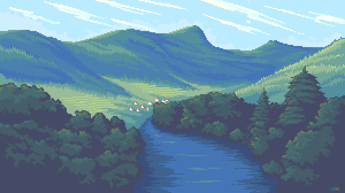 "Calme journée sous la Dent" Reposting this one, beacuse it's still my favorite piece ⛰️🌤️! #pixelart #landscape #dentdevaulion
