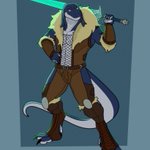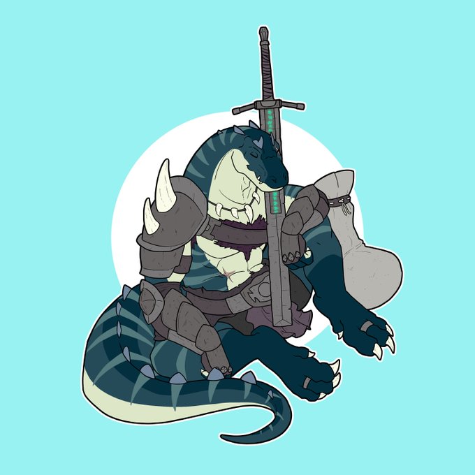 Commission for @ThrakosBangaa Big glowing swords are fun, might get one myself sometime lol #commission #characterart #bangaa #scalie #fantasy