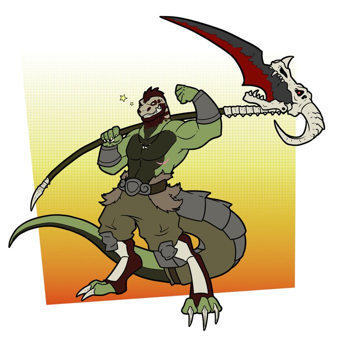 Just finished this commission for my friend @TurekGiga of his big dino boy I think I've said this about every single one of my pieces, but I had a lot of fun on this one too 💚 #fantasy #scalie #dino #barbarian #bonfire #digitalart