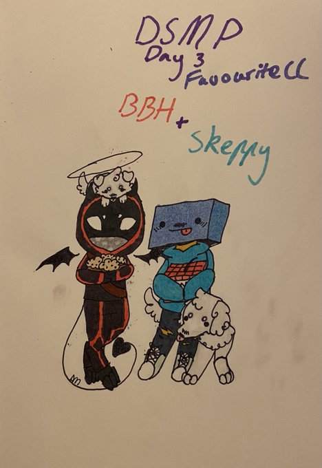 Dsmptober day 3! I didn’t post day 1 here and I didn’t do day 2. I really liked how this turned out! Although I didn’t have markers in colours I wanted so Skeppys skin tone is a bit off I think #DSMPtober #dsmp #dsmpfanart #skeppyfanart #bbhfanart #happytwt