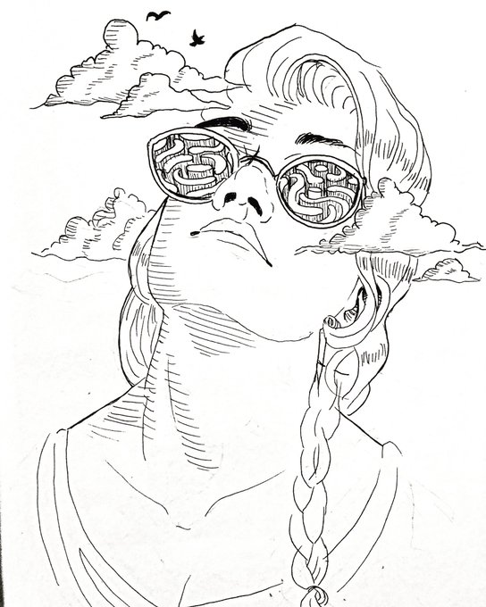 Inktober day 12: Forget! Someone’s head is in the clouds! #inktober #inktober2022 #inkdrawing #inktoberforget #inktoberday12