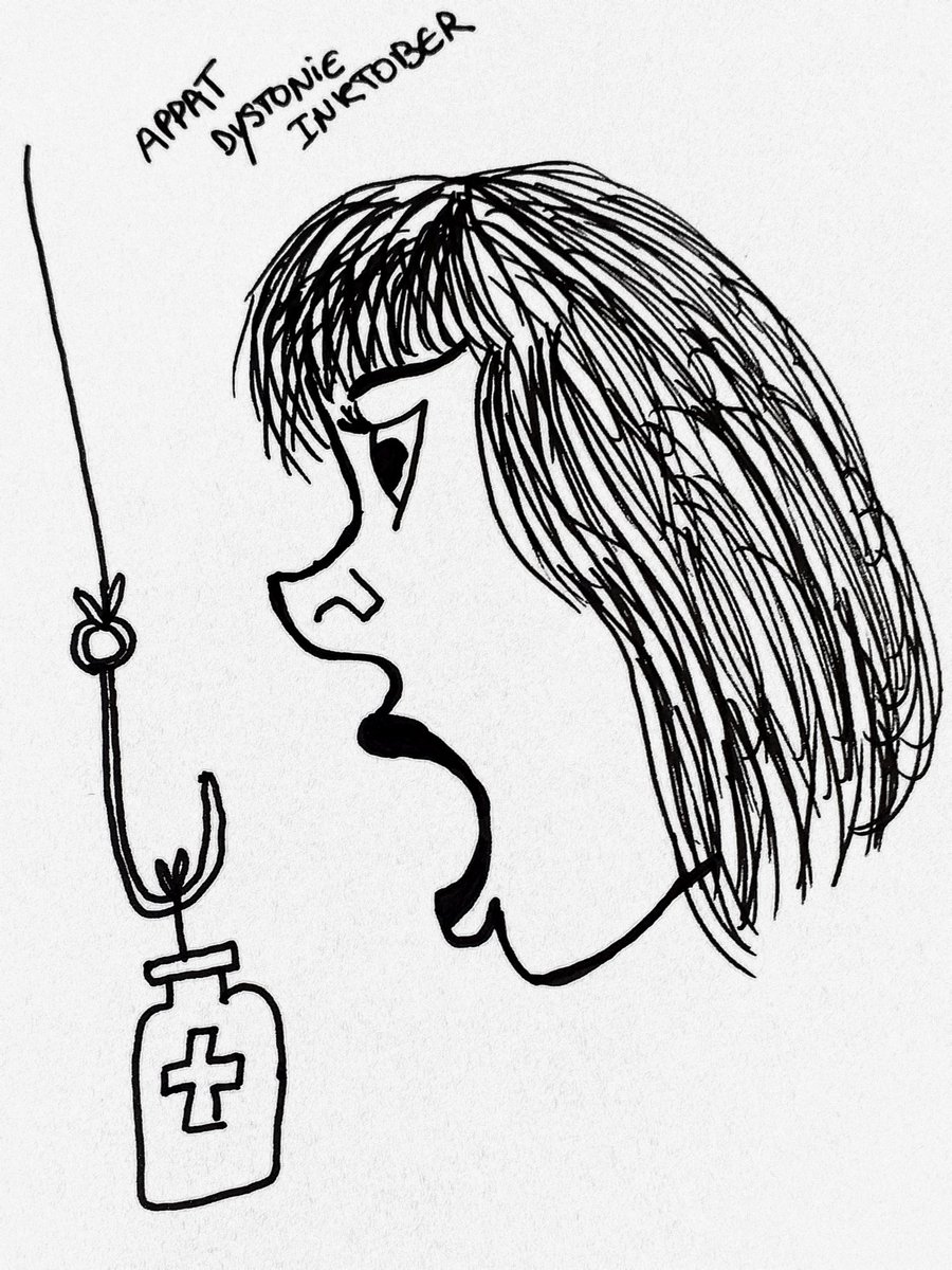 #Inktober2019 #inktoberday3 #Bait with my #writercramps #Dystonia. Tu reconnais la #Dystonie oromandibulaire? L '#appat du médicament pour aller mieux.