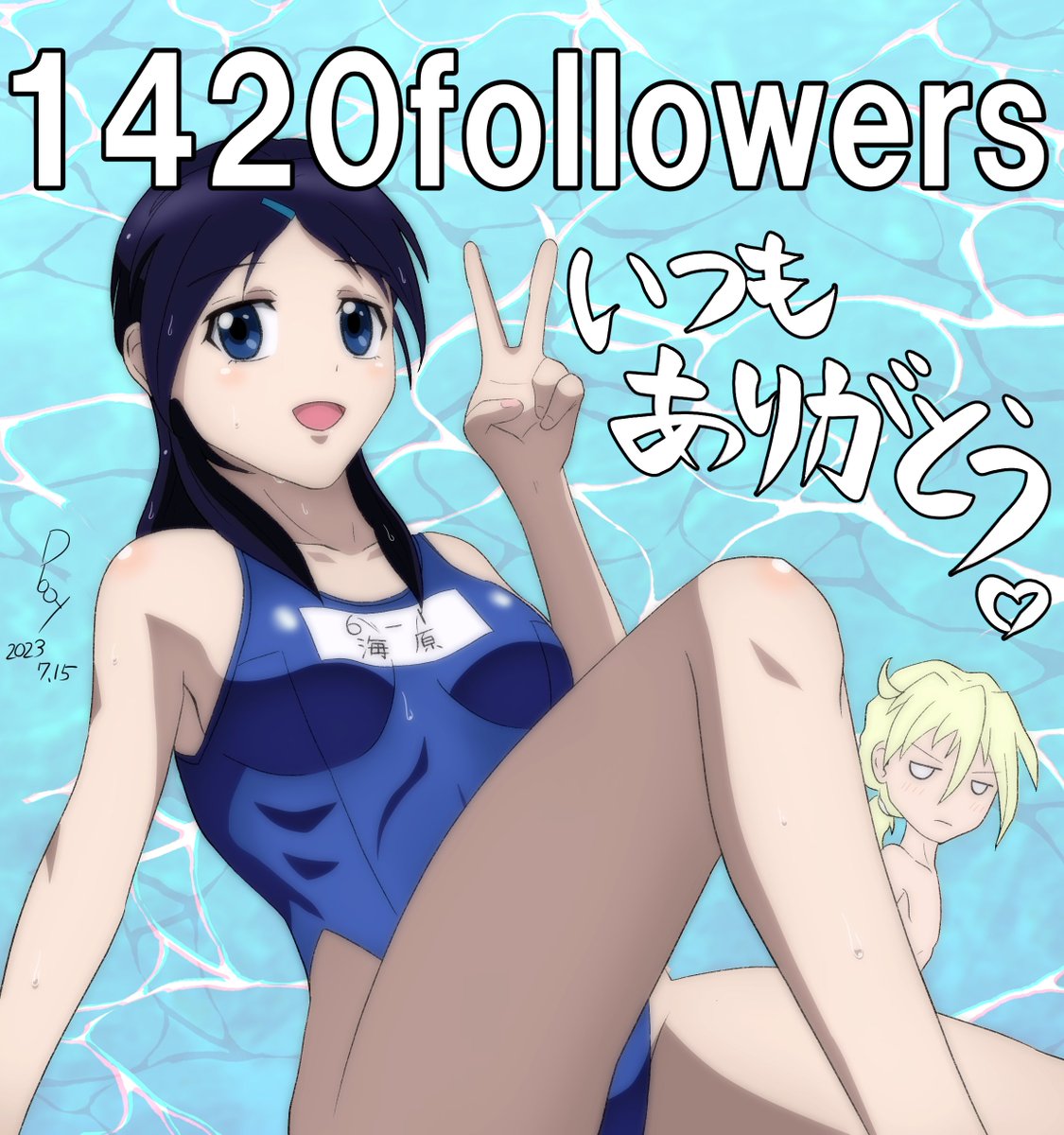 1420フォロワー記念イラストとして 今回はうちの子「海原 涼」のスクール水着!👙 いつもありがとうございます!これからも末永くよろしくお願いします