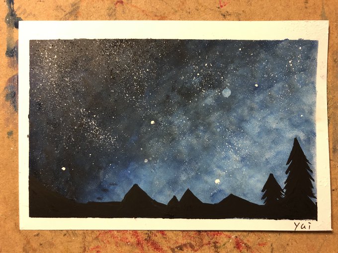 これ何アートっていうのかなあ 夜空アート?そんなジャンルある?w 何だかハマって描きまくってしまった⭐ #イラスト #絵描きさんと繋がりたい #お絵描き好きさんと繋がりたい #水彩画 #夜空 #星空