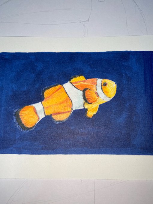 昨日描いた色鉛筆の練習がてらクマノミ 白いところを活かしたくてなんとなくバックをコピックで塗ったら雑になった #色鉛筆 #絵描きさんと繋がりたい