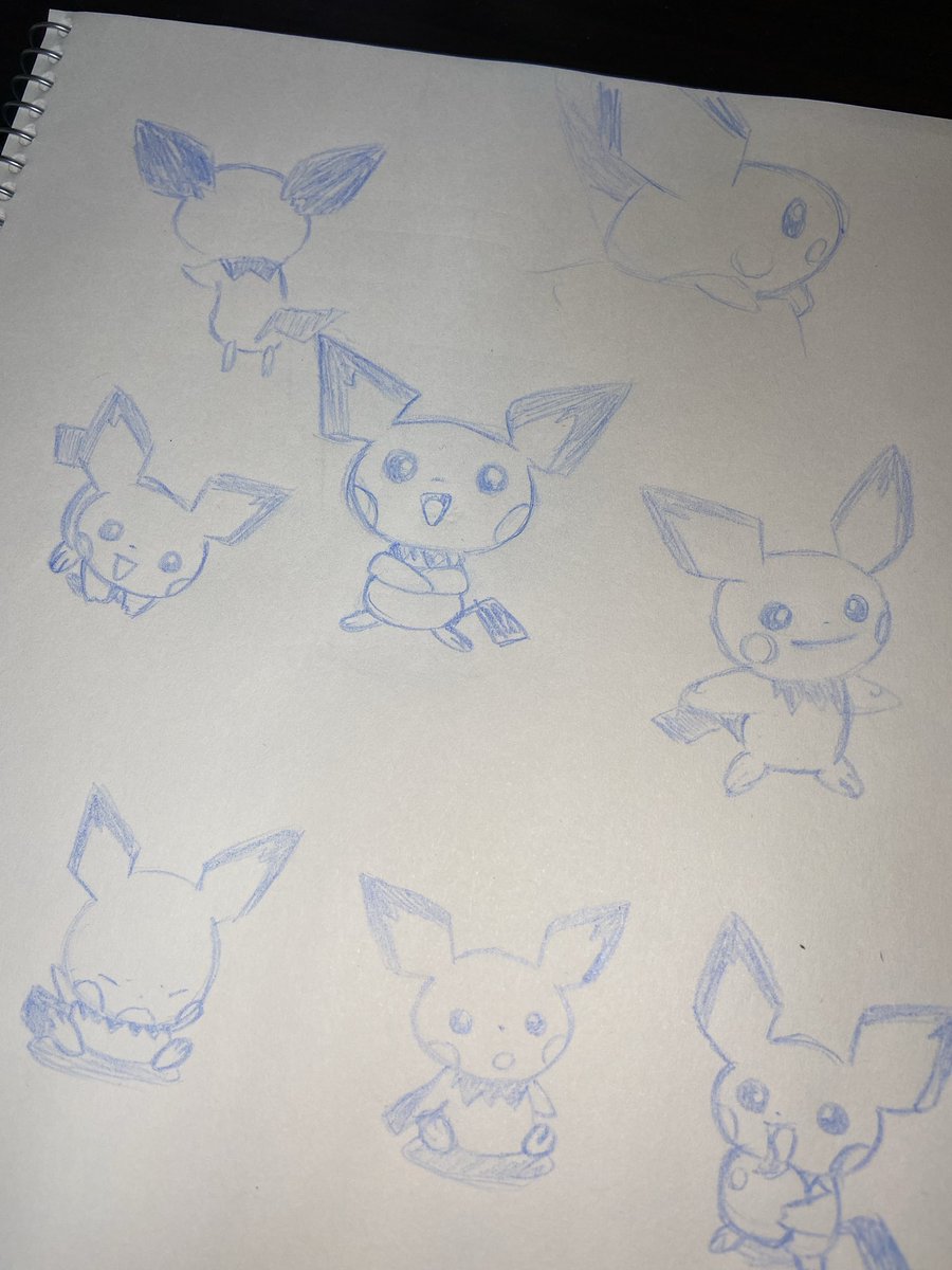 10 42 #イラスト #アナログ絵 #絵描きさんと繫がりたい #ピチューの日 #ポケモン 真ん中以外はアニメ観ながら模写 22/10/02 20:48