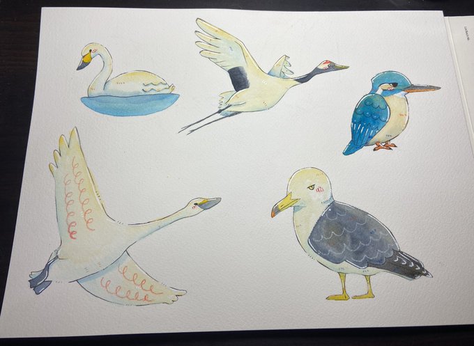 鳥たち 一枚に色々描くの楽しい #水彩画 #透明水彩 #イラスト #アナログイラスト #絵描きさんと繫がりたい #イラスト好きさんと繋がりたい #動物好きな人と繋がりたい