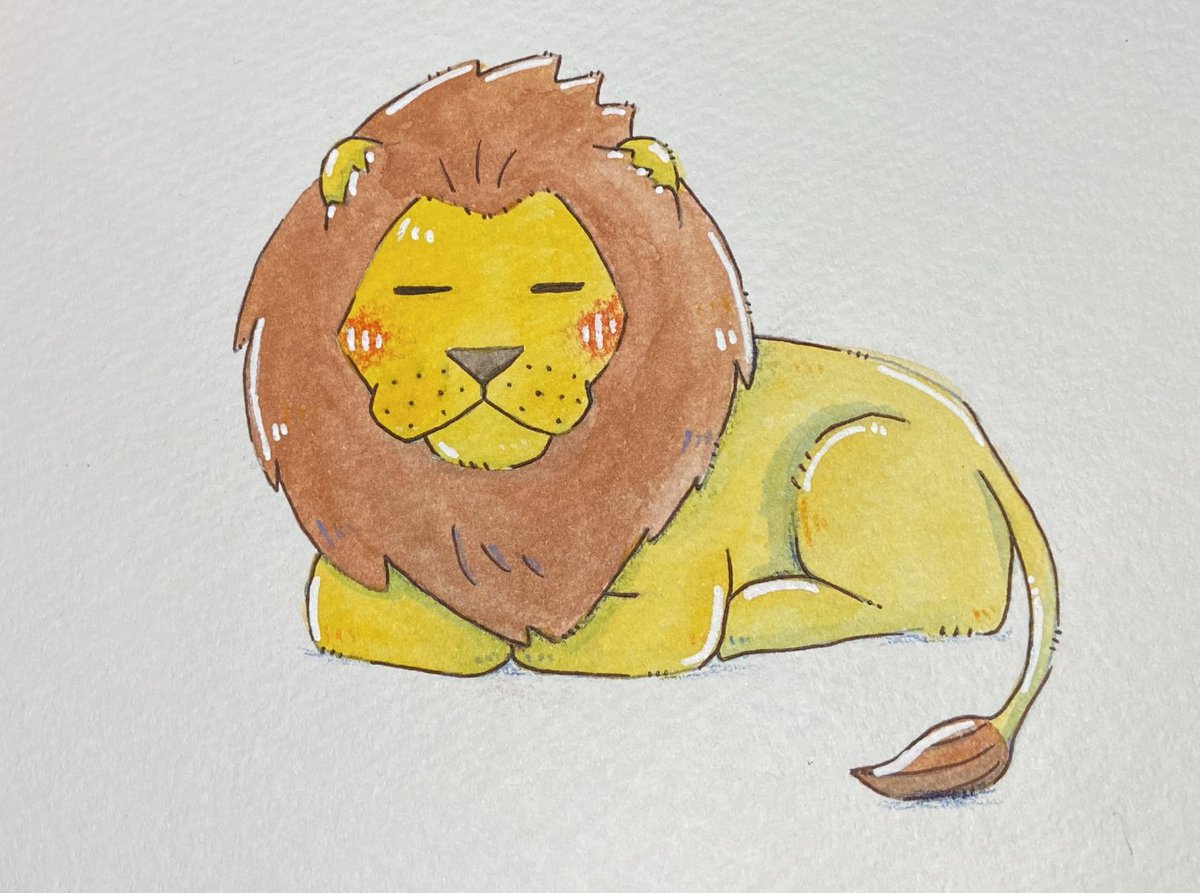 ライオンの香箱座り #イラスト #アナログイラスト #水彩 #絵描きさんと繋がりたい #イラスト好きさんと繋がりたい