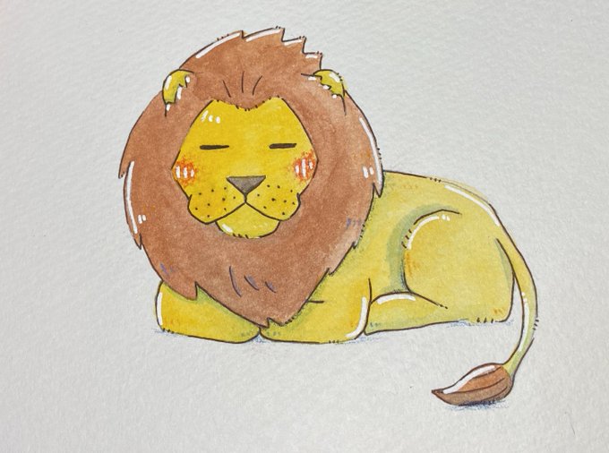 1 12 ライオンの香箱座り #イラスト #アナログイラスト #水彩 #絵描きさんと繋がりたい #イラスト好きさんと繋がりたい 22/12/15 21:48