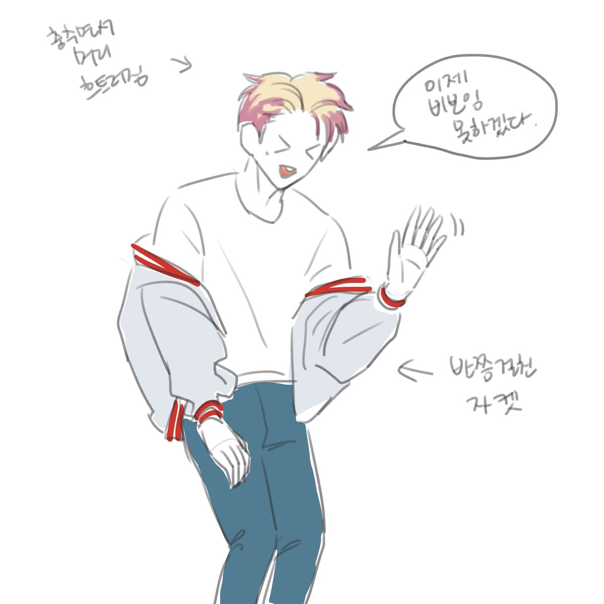 처음에 나오자마자 모니터보면서 이렇게 가슴 스트레칭하는 포즈 했는데 나올때 소리지르지 말고 무대할때 질러달라고 하셔서 응원봉만 흔듦ㅠㅠ