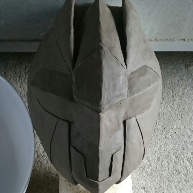 10 16 今回のお面の製作を簡単に説明しますと ①油粘土でベースを作る ②石膏で型を作る ③型にゲルポリとガラス繊維を塗り込む ④型から取り出して形を整えて塗装 となっております。 18/12/04 00:36
