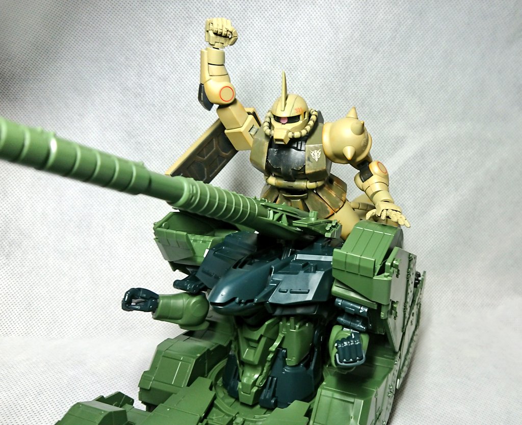 グフ(サイラスロック機) 久方ぶりにちゃんと完成しました。 ほぼジャンクパーツと廃ランナーでできてます。 #今月作ったプラモ晒そうぜ