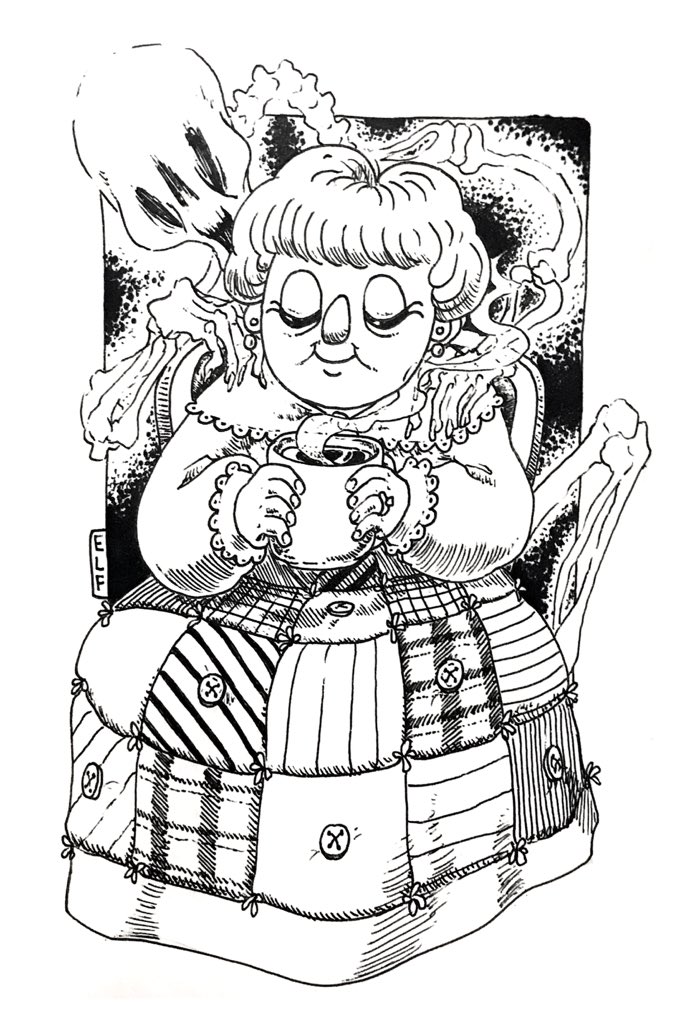 Inktober 2020 - Day 9: Throw Just ol’ granny enjoying her throw quilt. #inktober2020 #inktober2020day9 #inktoberthrow #inktoberday9throw