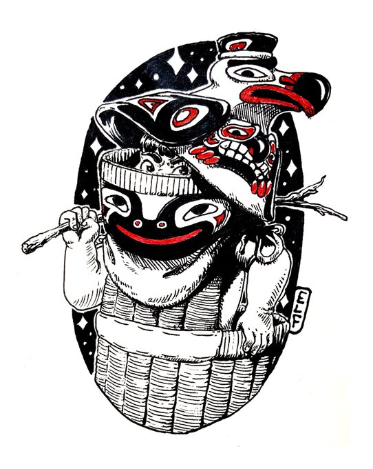 Inktober 2020 - Day 14: Armor Tlingit and other northern tribes have such expressive art! I like to imagine this young boy is often scolded by his armor... #inktober #inktober2020 #inktoberday14 #inktoberarmor