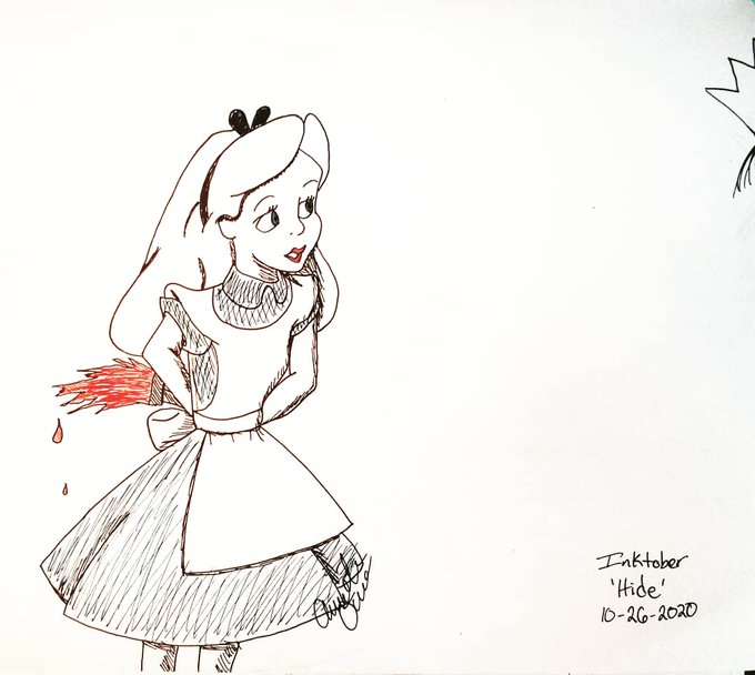 My last 3 #Inktober sketches. #inktober2020 is done and in the book (literally). I missed the first and last 3 days. Not bad for my first year. #inktober2020day26 #hide #inktober2020day27 #music and #inktober2020day28 #float #Disney