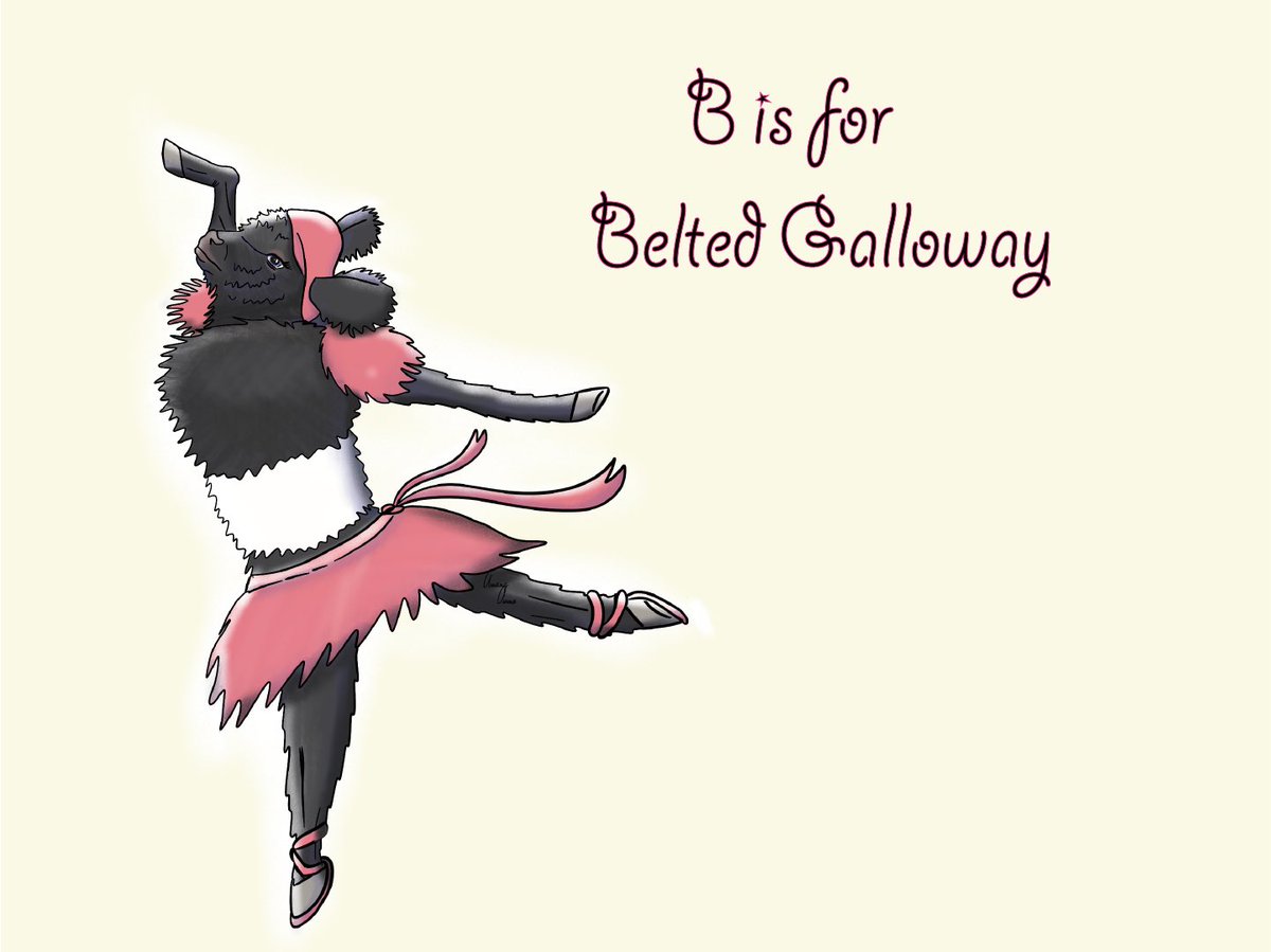 @AnimalAlphabets #AnimalAlphabets #illustration B is for Belted Galloway! #art #digitalartwork #digitalart #Procreate #iPadPro #ApplePencil #cute #ballerina #cow #cartoon