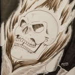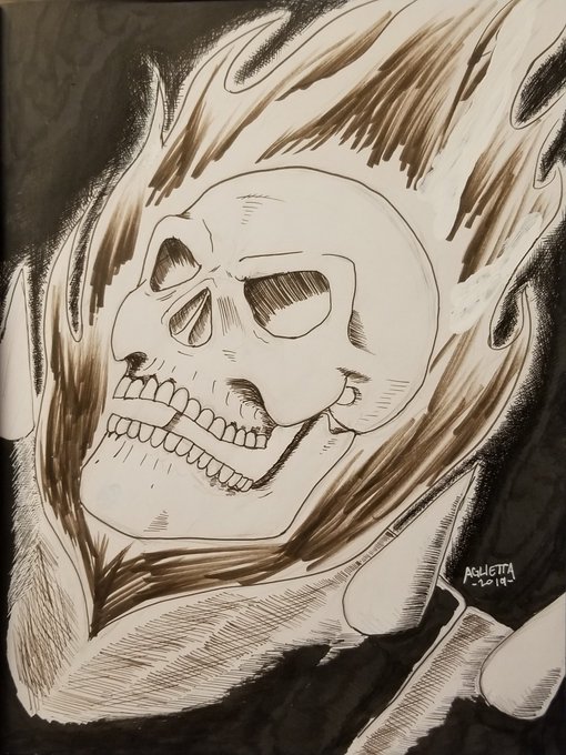 "The Rider" 9x12 #sketchbook #ink Originally created during #inktober #inktober2019 #illustration #artwork #penandink #traditionalart #darkart #GhostRider #Marvel #pentelbrushpen #copicdrawingpen #copic #pigmamicron #heartbroken #noheart #illustrator #AgliettaArt #DeathMetalHero