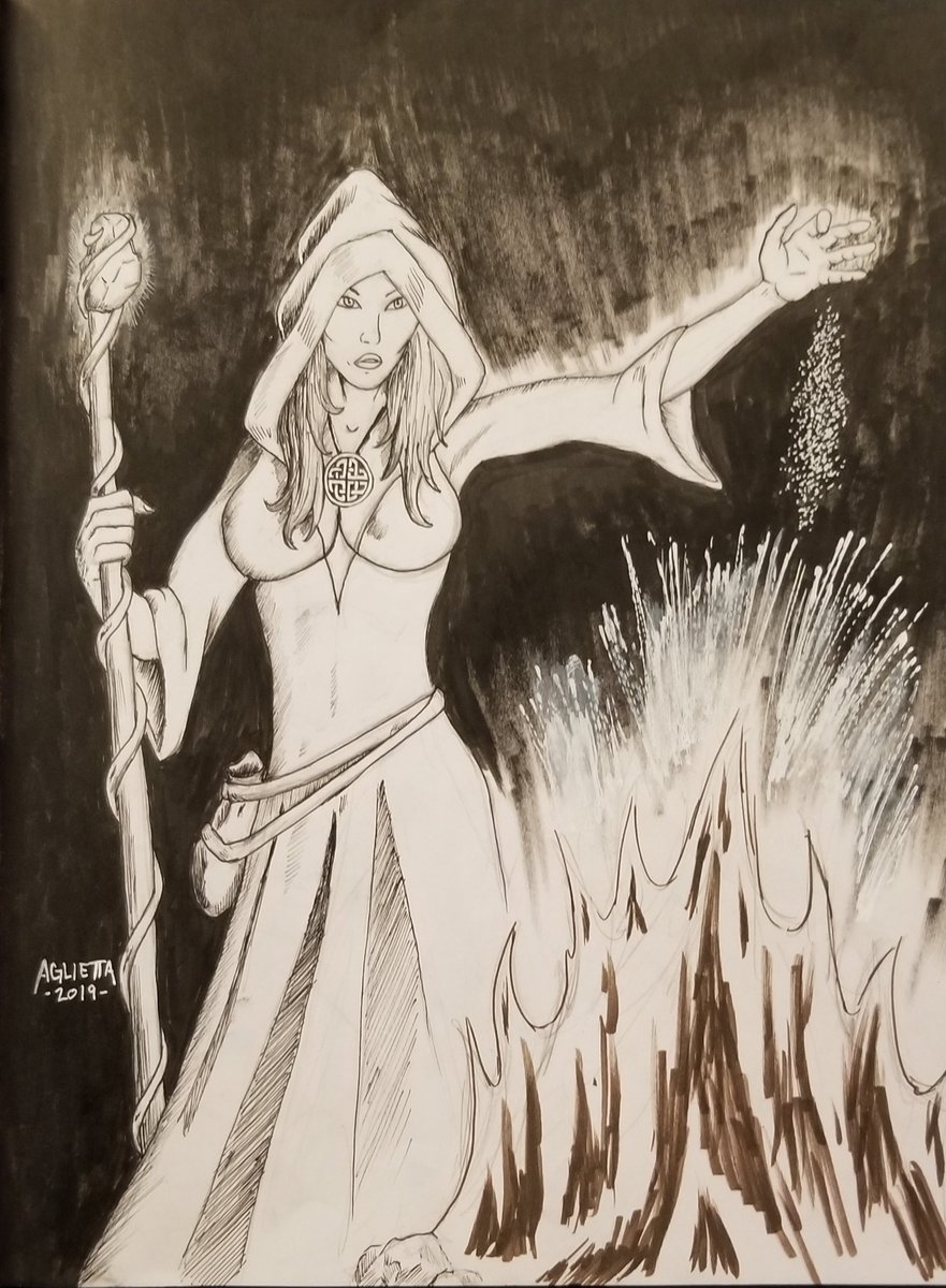 "Be my Druidess" 9x12 #sketchbook #ink Originally done for #inktober #inktober2019 #typeonegative #druidess #samhain #illustration #artwork #penart #penandink #traditionalart #blackwork #darkart #sepia #pentelbrushpen #copicdrawingpen #pigmamicron #AgliettaArt #DeathMetalHero