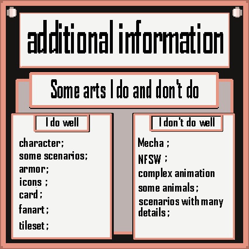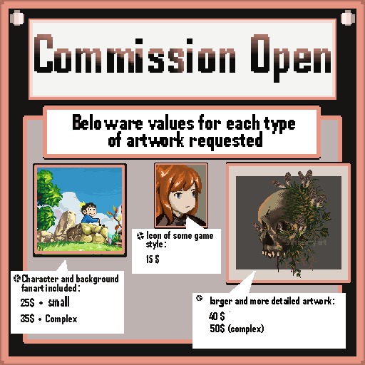 ✨hello guys! ✨ I'm publishing here my "mini-table" of commissions I'm open to do. You can come talk to me without fear hahahaha! I really appreciate whoever RT to help with my work! ------- #pixelart #commissionsopen
