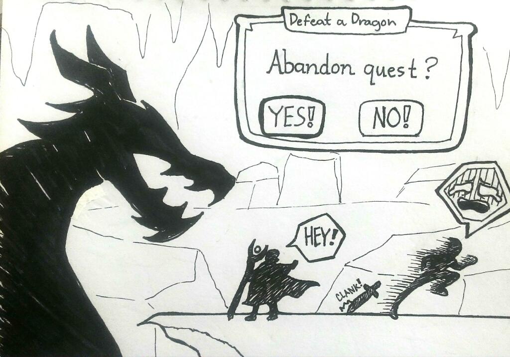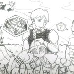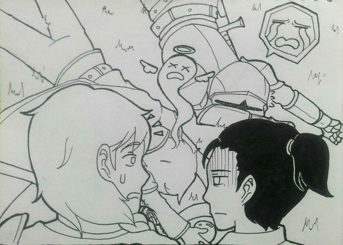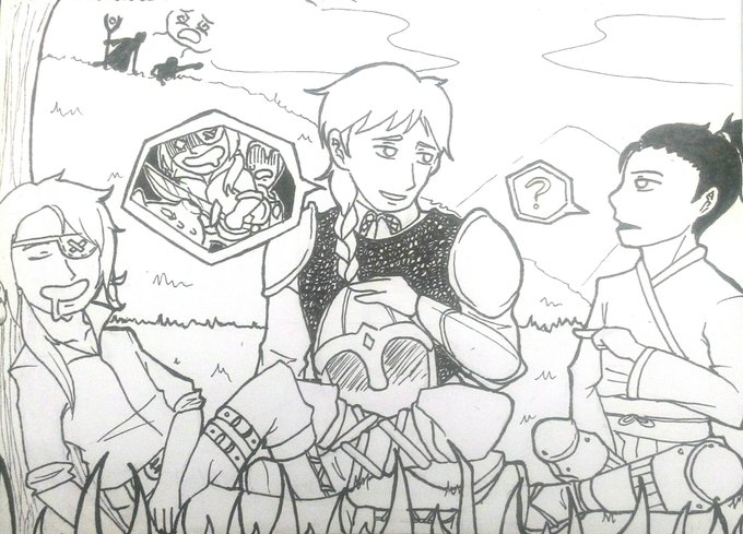 Day 7: Exhausted Well, the Viking and the Samurai found the two adventurers lying on the grass. The Wizard doesn't seem to move at all...maybe? And the Knight is just a plain coward. #inktober #inktober2018