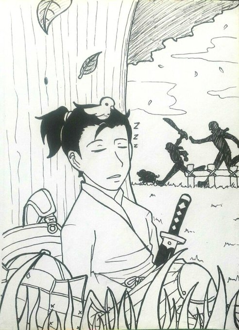 Day 2: Tranquil Sometimes, you have to take a break, even if you're in a hectic situation. But this guy doesn't seem to care lol #inktober #Inktober2018