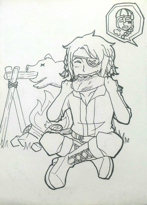 Day 3: Roasted I have a headache, but I'll be fine. Like this dude here, he cook himself a pig. It makes me feel hungry lol #inktober #inktober2018