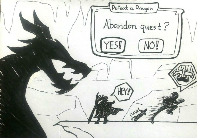 Day 4: Spell The wizard is trying his best to defeat a certain foe, probably could've been easier if the knight lend a hand. I don't know which is best so I post two pictures, one of them I edited to make it look like they're inside a cave. So, yeah :) #inktober #inktober2018