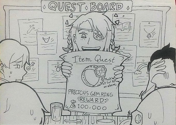 Day 9: Precious Item Quest: Precious Gem Ring Must be at Level 30 or higher But they just hit Lvl 30... Looks like they'll gonna have a rough time... This Pirate really likes gold a lot #inktober #Inktober2018