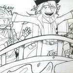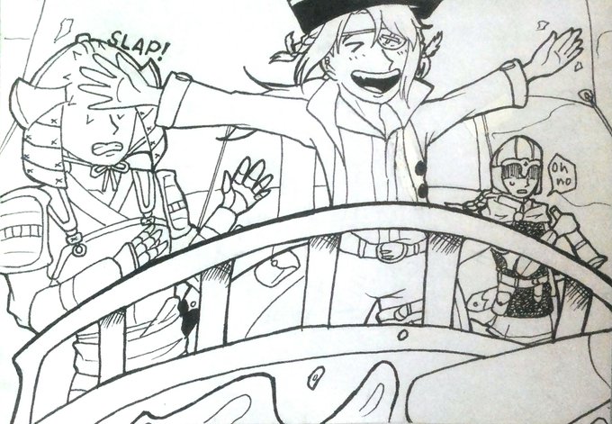 Day 10: Flowing With everybody in full gear, they sail off to a far away land to find the ring. Looks like the Pirate is happy and spreads his arms wide against the flowing breeze of the salty sea ...Until he accidentally slaps the Samurai. Oh boy... #inktober #Inktober2018