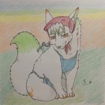 #ケモナーさんと繋がりたい #絵柄が好みって人にフォローされたい #犬工房 (フェンリオ)ん?これか?これはな、オレの一番の大事な人からもらったお守りだなッ! (戦についた頬の傷。後ろ髪に髪飾りのお守りを結った新しい武蔵の誕生!新しく名前も「炎狼武蔵」になりますゆえm(_ _)m)
