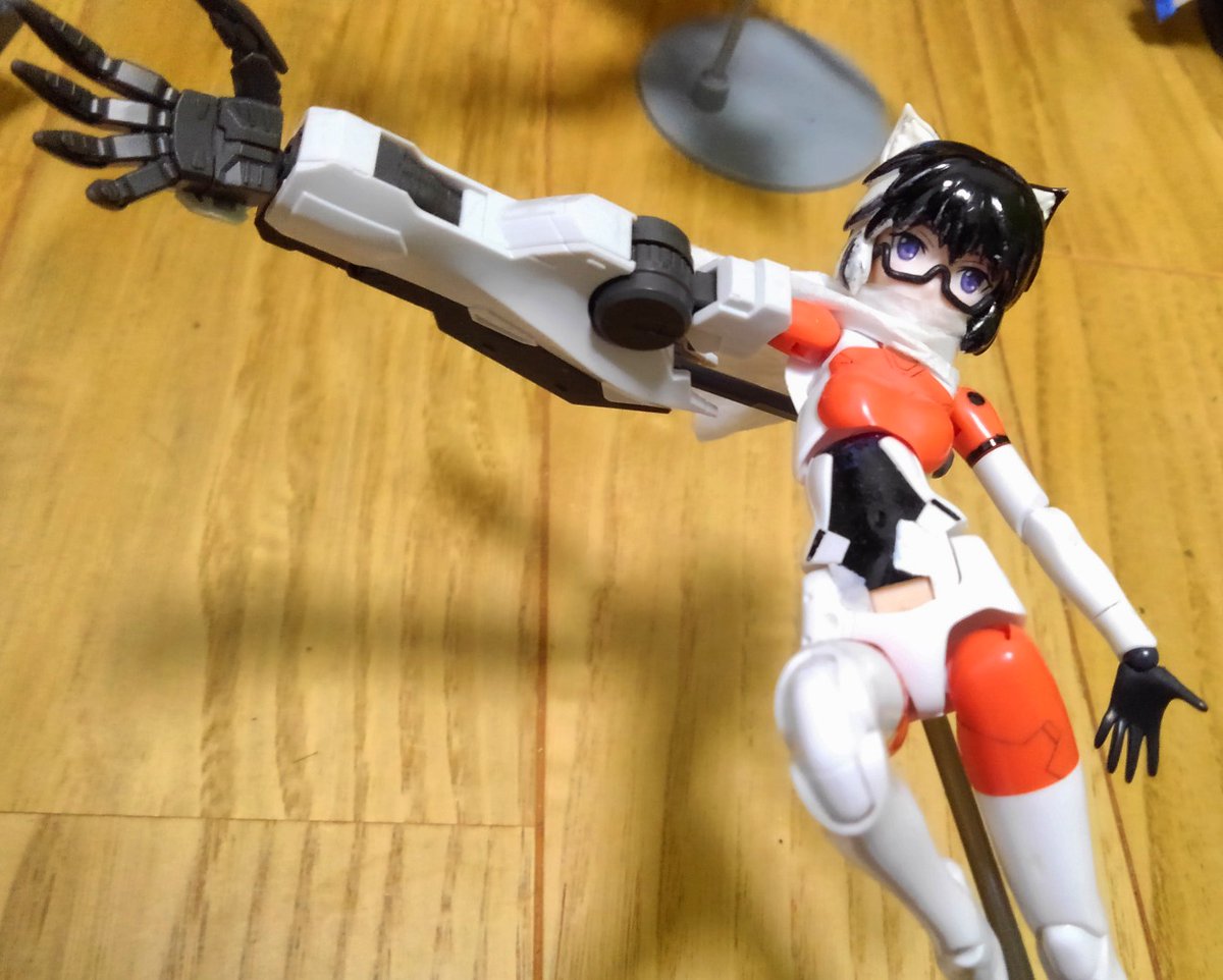 #プラモデラーなお絵描きさんっていらっしゃいますか このタグ使ってる他の人たちと比べて どっちも大手を振って名乗れるクオリティではないけど うちの子をメガミの余剰パーツとルプスレクスからもいだ腕とかで再現したことはある 違和感なくハルバード生やせたら完璧だった