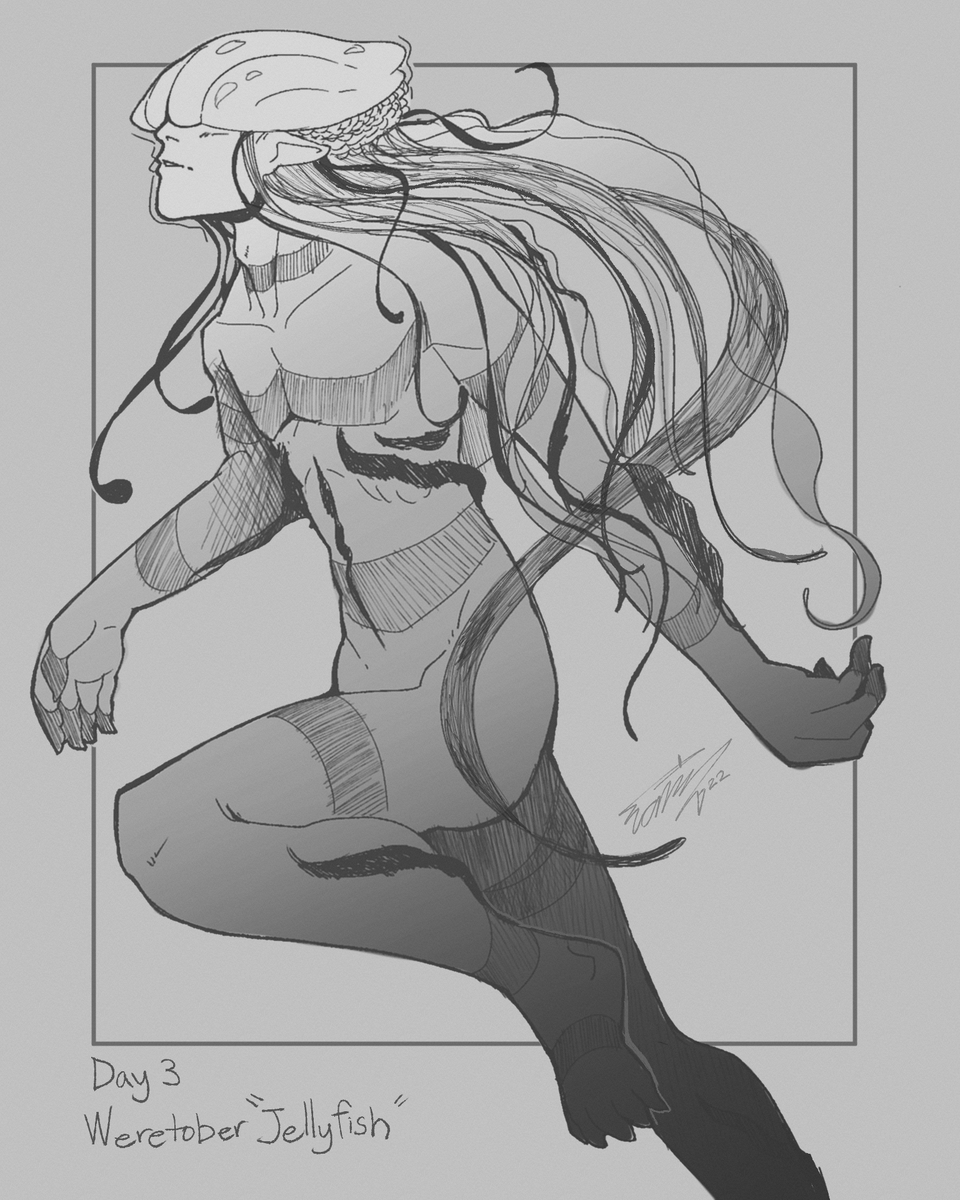 Drawtober Day 3 : Weretober "JellyFish" #drawtober #inktober2022 #weretober2022