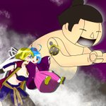 #東北ずん子深夜の真剣お絵描き60分一本勝負 #東北イタコ お題【扇🪭】 🦊「あら、きりちゃん、こんな夜ふけに起きてちゃだめじゃない。」 🔪「貴方こそ、タコ姉の体を乗っ取ってどこ行くんですキツネさん?」 「チッ…これだから勘のいいガキは…」