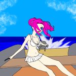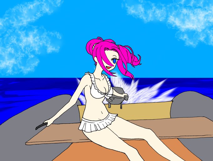 #東北ずん子深夜の真剣お絵描き60分一本勝負 #四国めたん お題【ゴム】 ⛽️「エンジンって要は熱の膨張を利用して吸気と排気を繰り返して動かしてるんでしょ?ガソリンが無くても私の能力でゴムボートくらい動かせるわよ。…練習すればそのうちね(。・ω´・。)ドヤッ」