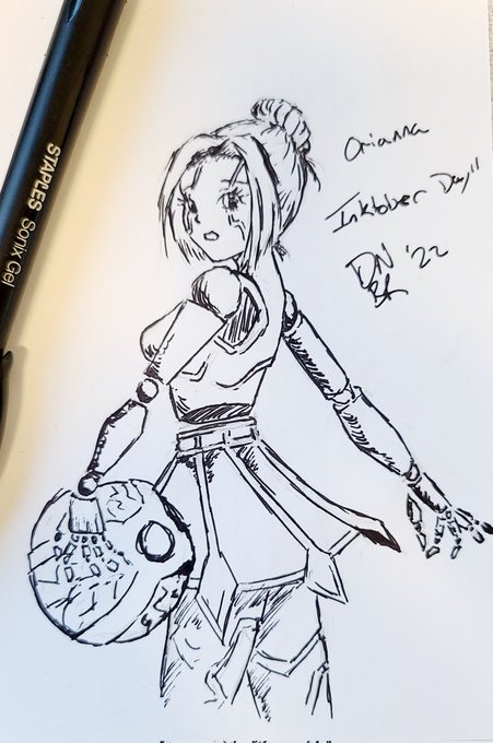Didn't have time yesterday to post this so here's day 11 of #inktober2022 #inktober Orianna from #LeagueOfLegends #anime #manga #sketch #ink