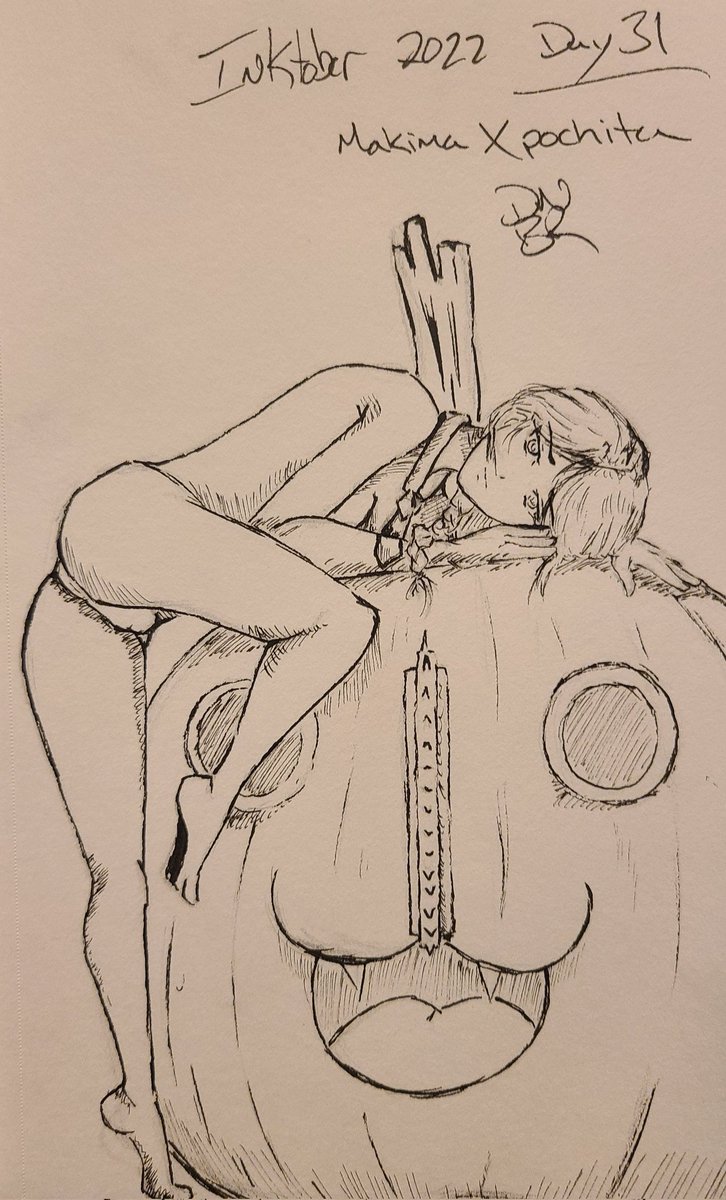 Hope everyone had a great Halloween!! #inktober2022 #inktober final #sketch. Today was Makima from Chainsaw Man with pumpkin pochita! #anime #manga #ink #chainsawman #makima