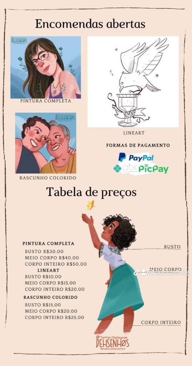 Encomendas abertas! Mais informações abaixo⬇️ Orçamento via dm ou através do email✉️: deboralcantarah2@gmail.com RT pra ajudar ameu trabalho a chegar em mais pessoas e ajudar o artista nordestino 💕 #ArtistOnTwitter