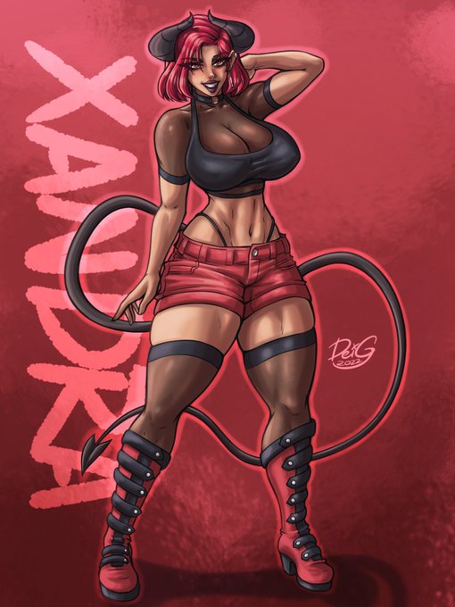 Hi everyone! all right, this is my first OC 🔥 I was working on her design for a while trying to give her all the things that I like in a character 😁 I hope you like it as much as I like to draw her ✨❤️ #ArtistOnTwitter #OC #anime #gothic #curvygoth #demongirl #devilgirl #sexy