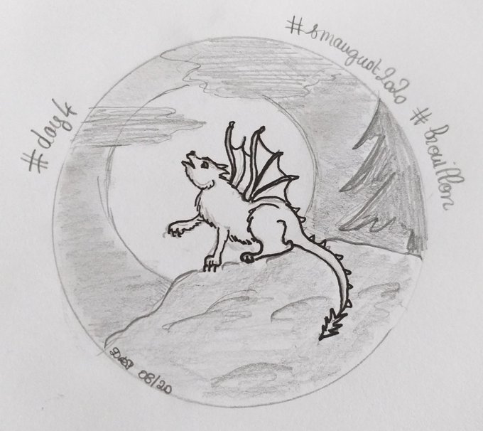 #MonPetitDessinduSoir hier soir je n'ai pas eu trop le cœur à dessiner. Après les nouvelles dramatiques à la télé, j'ai longuement admiré la lune... et j'ai pris du retard dans le challenge dragons #smaugust #smaugust2020 mais voici mon rapide griffonnage pour hier, day4 : wolf !