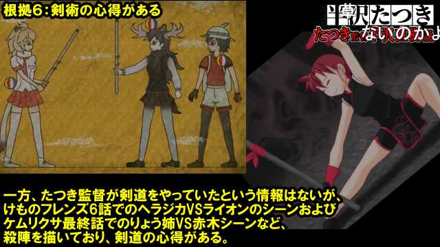 たつき監督が剣道部だったという情報が判明したが、けもフレ6話とケムリクサ最終話で描かれた殺陣でそれになんとなく気づいて動画にしていた自分はもっとその分析力を褒められていいはず! nico.ms/sm37353438?ref… #sm37353438 #ニコニコ動画