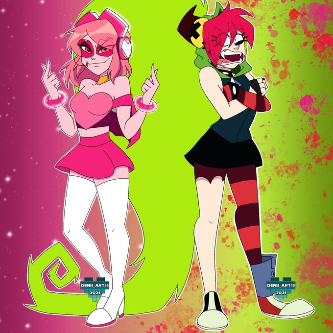 I did a redraw from last year. Here are Miss Heed and Demencia 💕💚🦎 #villainous #Villanos #villainousfanart